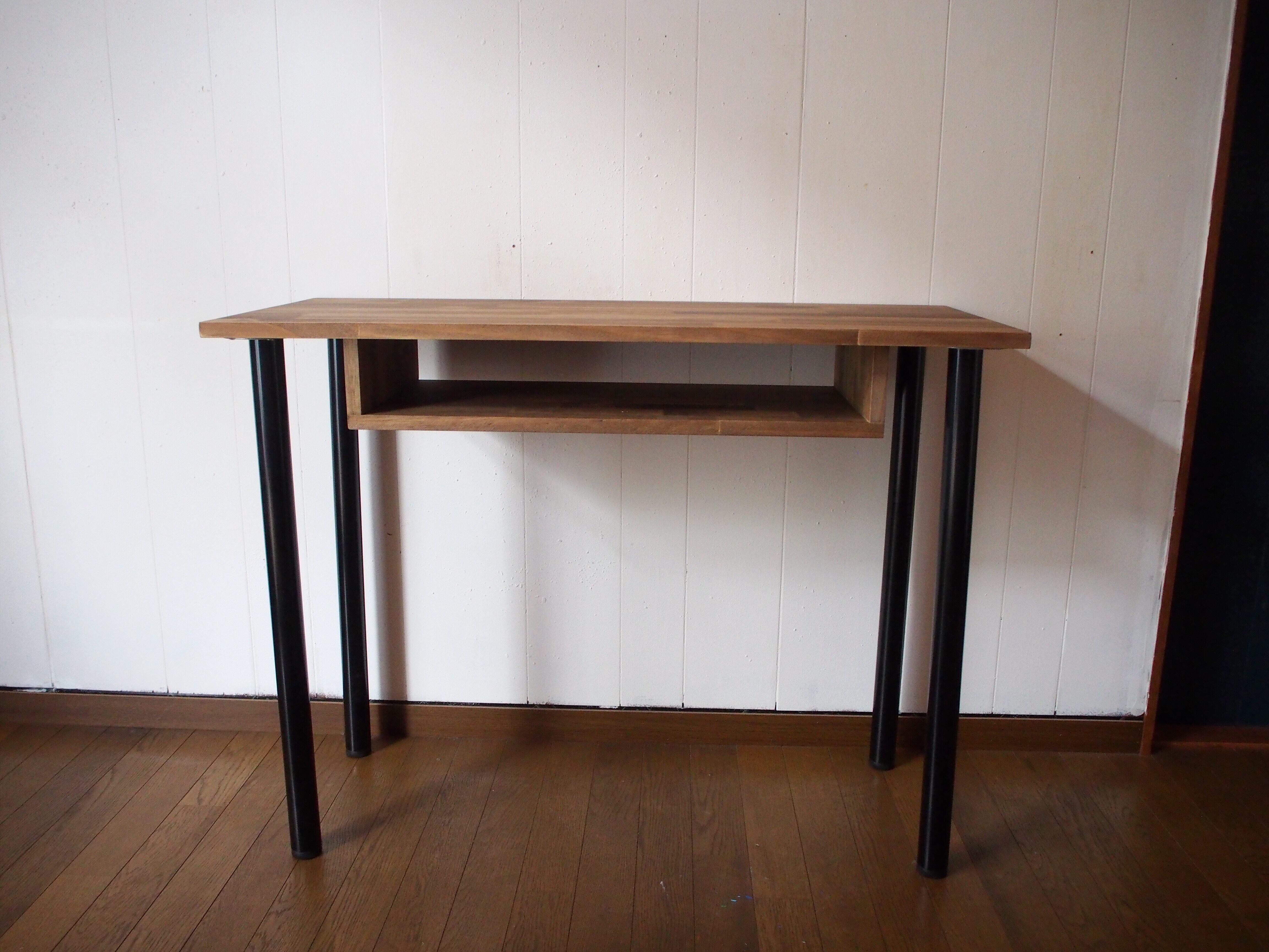 パイン集成材にブラックスチール脚を組み合わたシンプルなワークデスクです。収納棚が付いたことでより機能的にお使い頂けます。