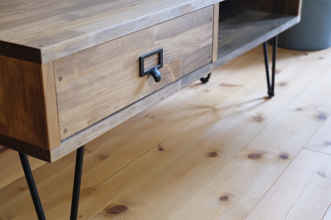 スリムでコンパクトなローボードでございますが、随時にアイアンを取り入れておりますのでデザインのアクセントになっております。