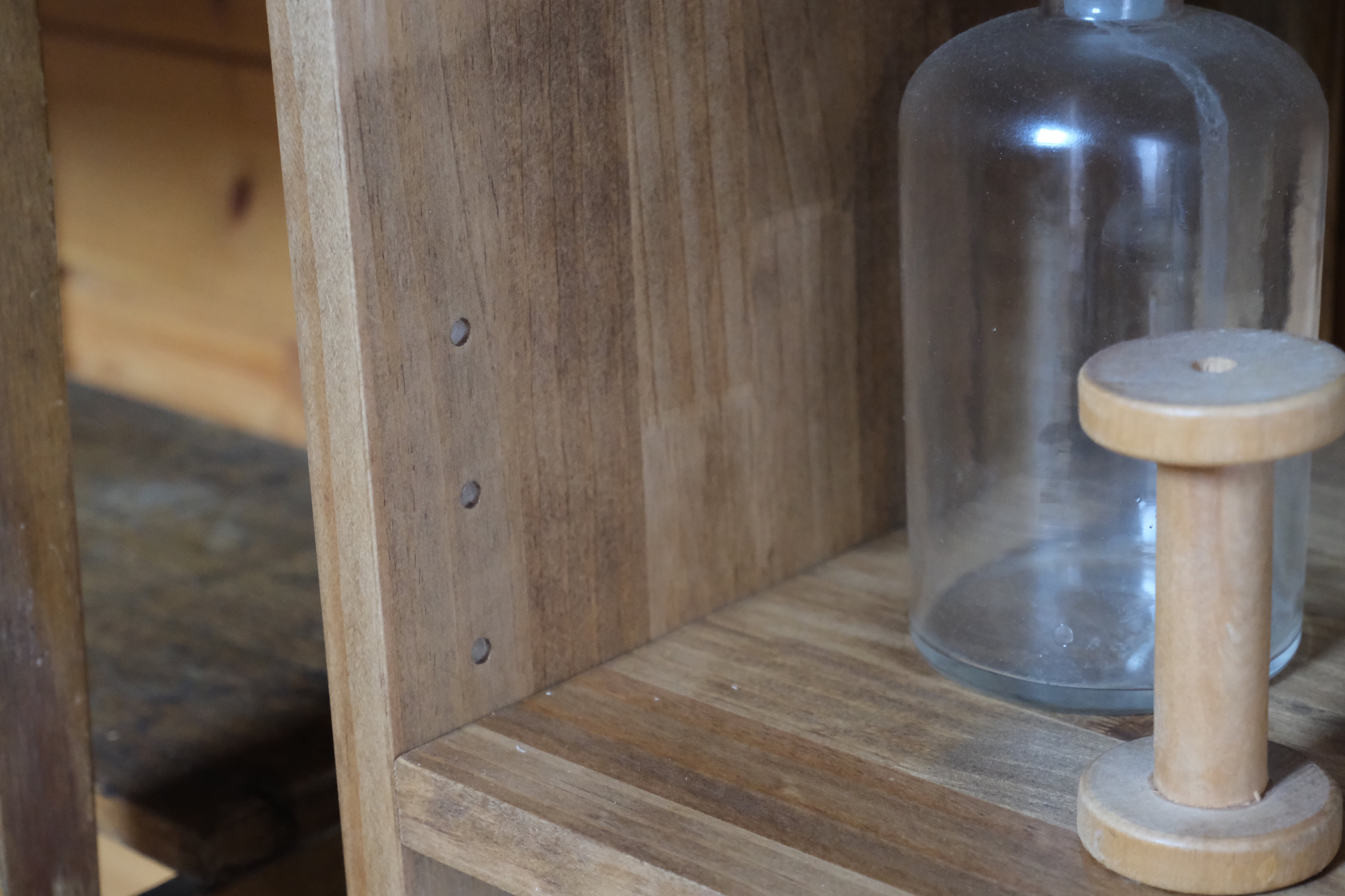 棚の高さ調整方法はダボで抜き差しする簡単な構造なのでお好みの高さでお使い頂けます。